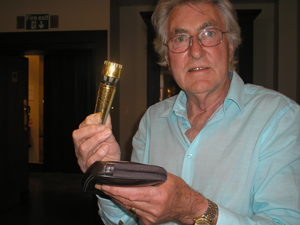 Robin with Ziggy's microphone at Bonham's auction |