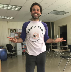 Brian Nazarof at the Everyday Gourmet, Glenview, Chicago, IL. USA wearing a 1972 David Bowie T-Shirt recently aquired from Robin |