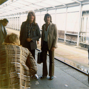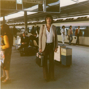 Robin waiting for the Bullet Train in Japan with Suzi Ronson (left) |